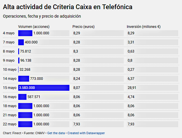 marejada bursátil fue la realizada por el accionista Criteria, 900.000