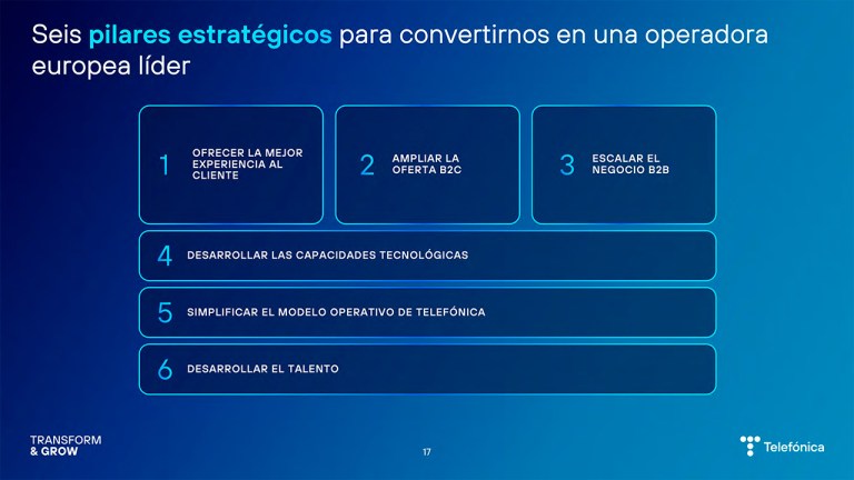 El plan se resume en el lema “Transform & Grow”, centrado en la transformación tecnológica y la eficiencia operativa.