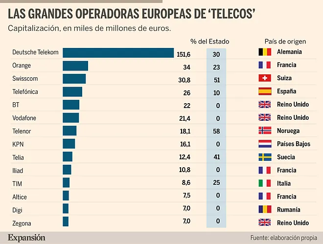- Aprender de los errores ajenos: el exceso de injerencia del Estado francés en Orange ha sido criticado por algunos como freno a la agilidad; el desapego excesivo habría sido igual de dañino. El punto medio es el más difícil, pero también el más europeo siempre que no se abandone la custodia de los intereses nacionales.